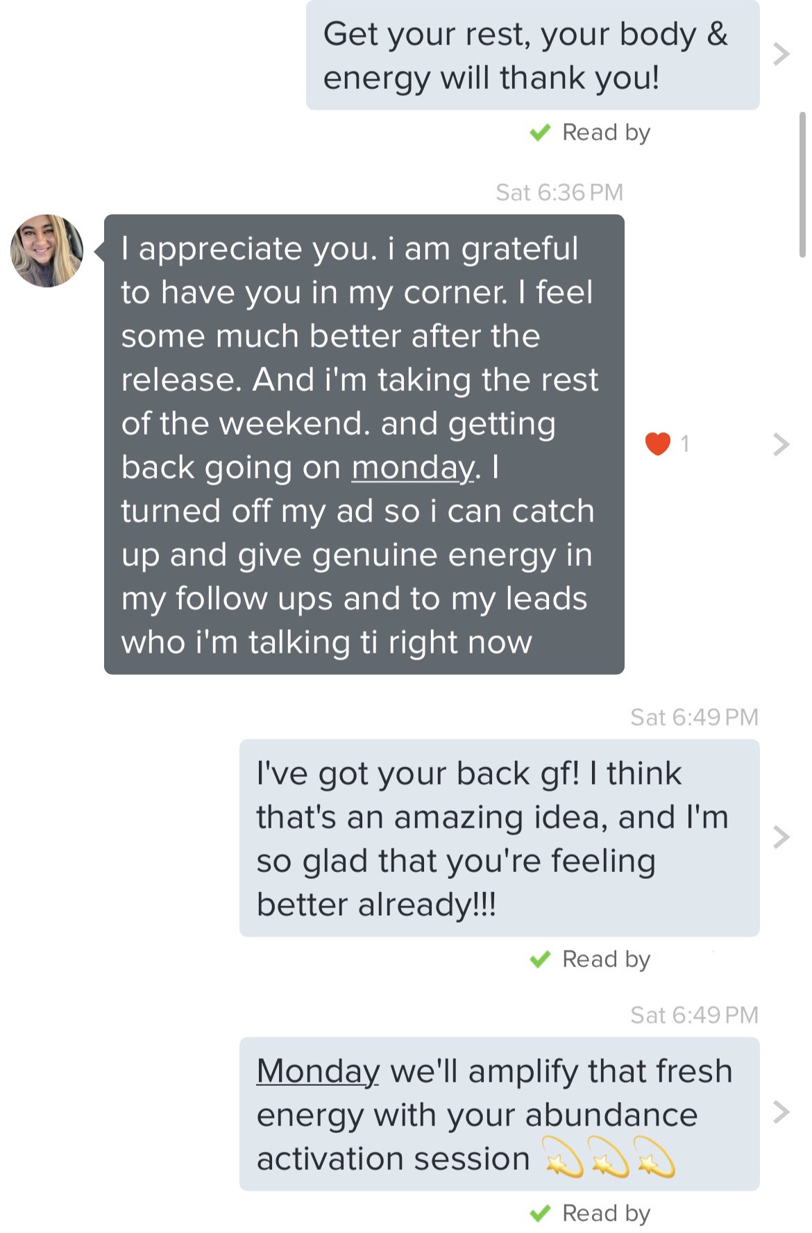 Voxer is our messaging platform and app that we will use for communication. I will be available to you 4 days per week: Tuesday, Wednesday, Thursday & Friday from 9 am-7 pm EST (during the duration of your contract). This will open up a consistent communication channel for any and all personal questions in the following categories: life, relationships, business, financials, energetics, or anything relating to the membership and its internal workings, etc.
