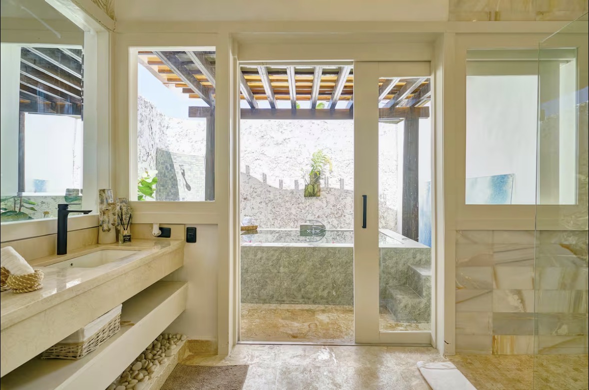 • A spa-style bathroom with indoor–outdoor flow